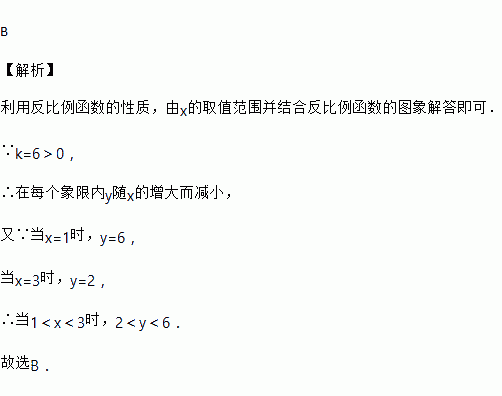 已知反比例函数y=,当1<x<3时,y的取值范围是( )