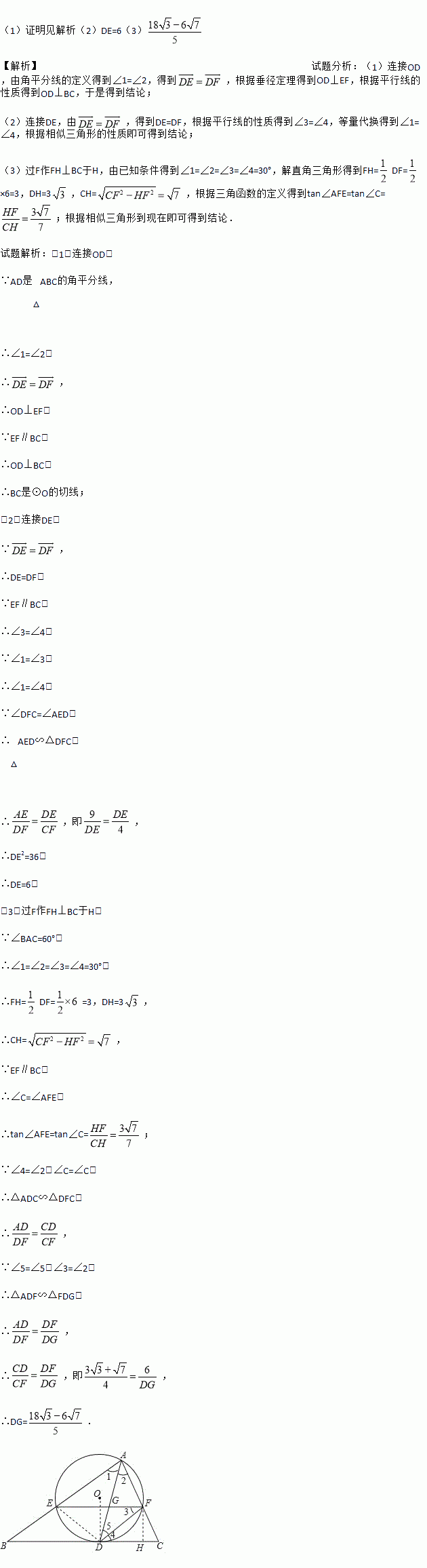 如图,AD是△ABC的角平分线,以AD为弦的⊙O交AB、AC于E、F,已知EF∥BC.