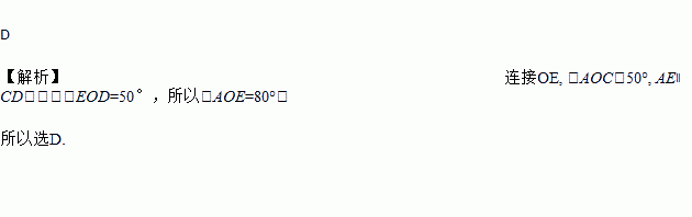 如图,已知AB,CD是⊙O的两条直径,且∠AOC=50°,作AE∥CD,交⊙O于E,则弧AE的度数为( )