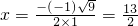 b2-4ac=(-1)2-4×1×(-2)=9,