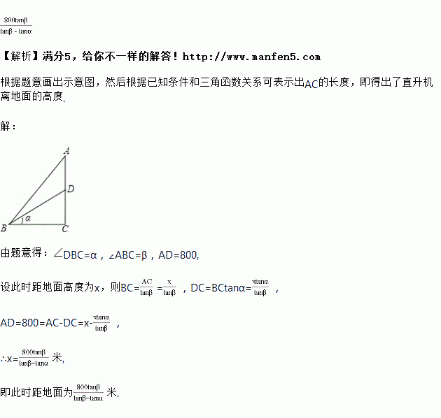 某直升机在世博场馆的上空执行任务,从飞机上测得中国馆的俯角为,该直升机垂直上升米后,测得中国馆的俯角为,那么这时直升机距地面的高度为________米.(用含、的表达式表示)