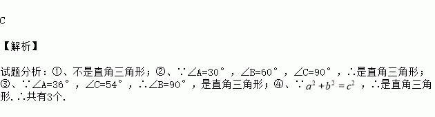 适合下列条件的△ABC中,直角三角形的个数为 ( )