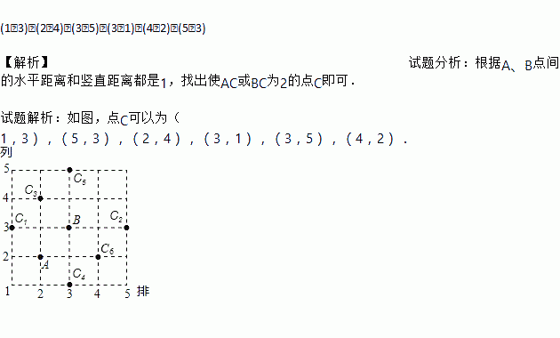 如图,正方形网格中的交点,我们称之为格点,点A用有序数对(2,2)表示,其中第一个数表示排数,第2个数表示列数,在图中有一个格点C,使三角形ABC的面积为1,写出所有符合条件的表示点C的有序数对.
