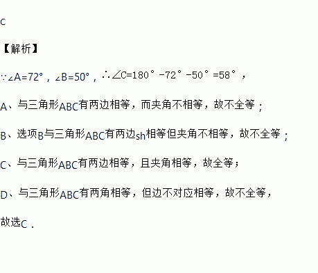 如图,a,b,c分别表示△ABC的三边长,则下面与△ABC一定全等的三角形是( )