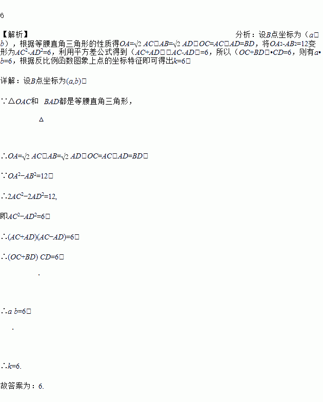 如图,和都是等腰直角三角形,,反比例函数在第一象限的图象经过点B,若,则的值为________.
