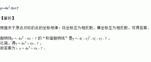 已知抛物线y1=a(x﹣m)2+k与y2=﹣a(x+m)2﹣k(m≠0)关于原点对称,我们称y1与y2互为“和谐抛物线”.请写出抛物线y=﹣4x2+6x+7的“和谐抛物线”______.