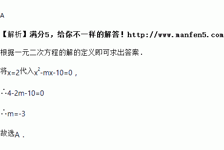 已知x=2是一元二次方程x2﹣mx﹣10=0的一个根,则m等于( ).