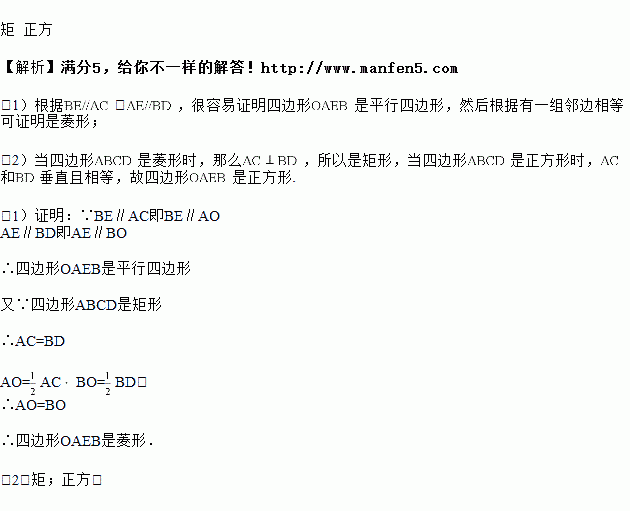 当题中的矩形改为菱形时,则四边形是________形;当题中的矩形改为正方形时,则四边形是________形.