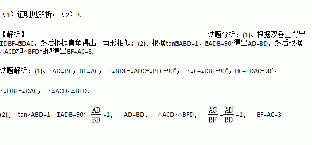 (2)当tan∠ABD=1,AC=3时,求BF的长.