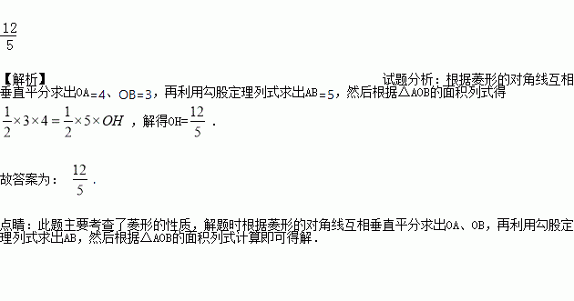 如图,菱形ABCD的对角线AC、BD相交于点O,且AC=8,BD=6,过点O作OH丄AB,垂足为H,则点0到边AB的距离OH=_____.