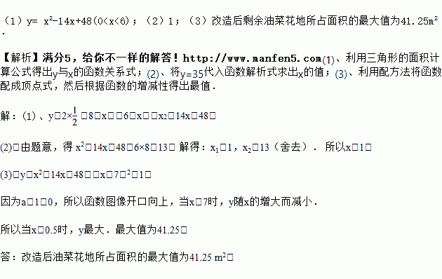 (3)若要求 0.5≤ x ≤1,求改造后剩余油菜花地所占面积的最大值.