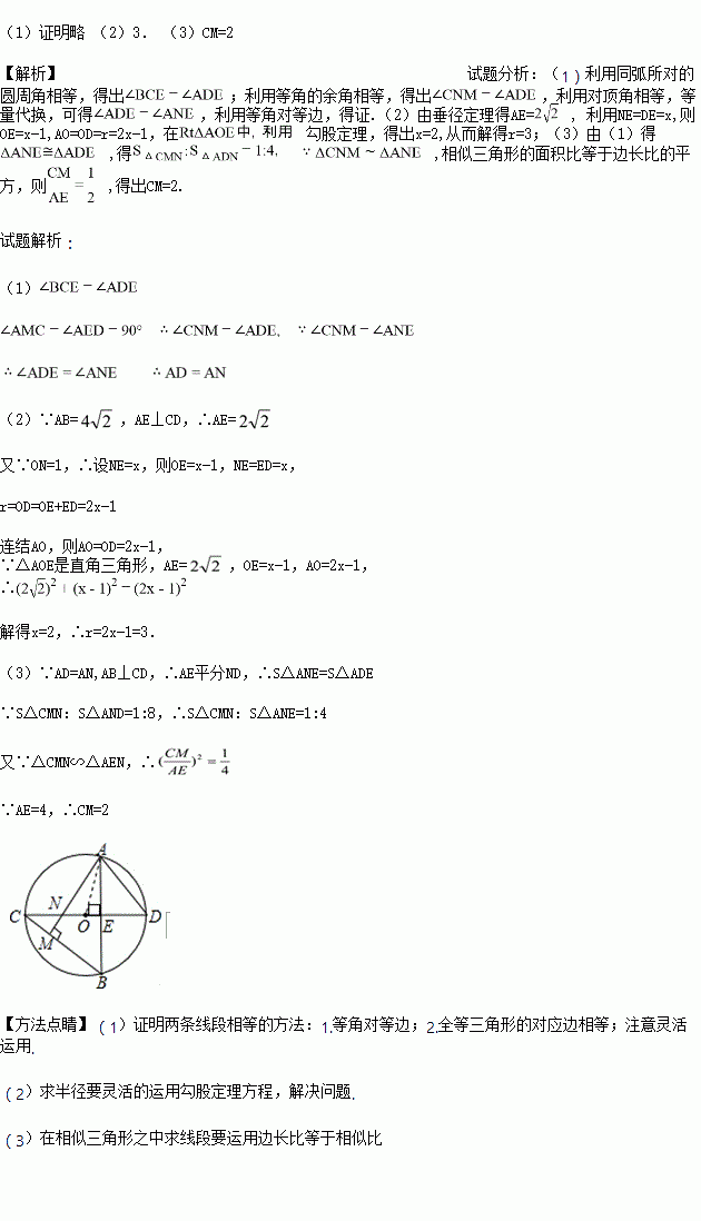 (3)若且AE=4,求CM的长