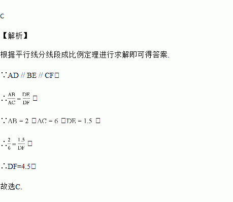 如图,,直线、与这三条平行线分别交于点、、和点、、,若,,,则的长为( )