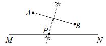 如图,MN表示海岸线,A,B分别表示甲、乙两间工厂,现要在海岸MN上修建一个码头,要求修建的码头到甲、乙两间工厂的距离相等,求作码头的位置P.(用尺规作图,
