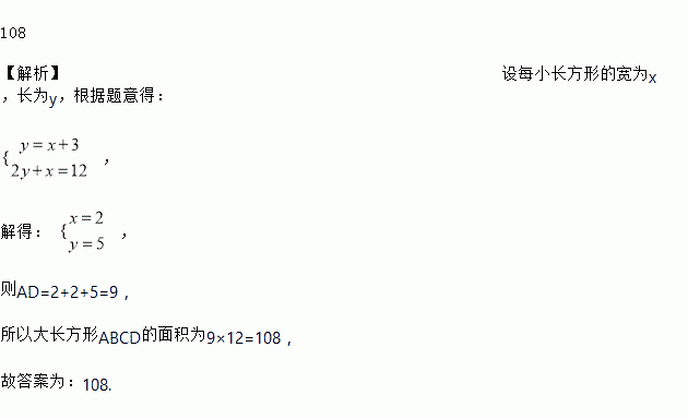 如图,长方形ABCD中有6个形状、大小相同的小长方形,且EF=3,CD=12,则大长方形ABCD的面积为________.