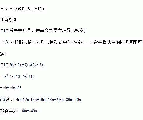 (1)2(x2-2x+5)-3(2x2-5)=________________.