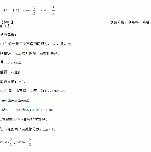 (2)求方程2x2﹣3x=5的两根之和,两根之积.