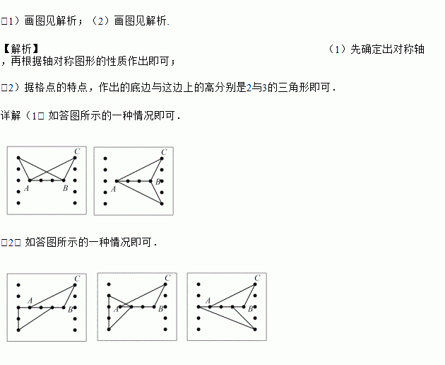 (1)在图2中画一个三角形,使它与△ABC组成的图形是轴对称图形;