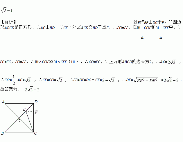 如图,已知正方形ABCD的边长为1,连接AC,BD,CE平分∠ACD交BD于点E,则DE=_________.