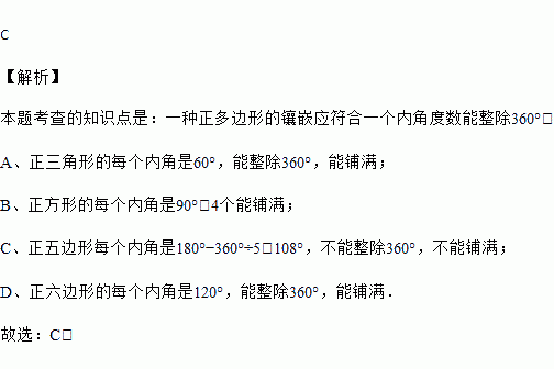 A. 正三角形 B. 正方形 C. 正五边形 D. 正六边形
