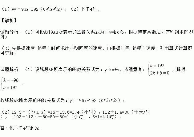 (2)已知昨天下午3点时,小明距西安112千米,求他何时到家?