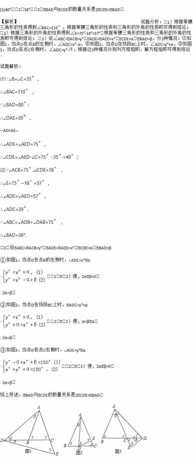 ⑴如图①,若∠B=∠C=35°,∠BAD=80°,求∠CDE的度数;