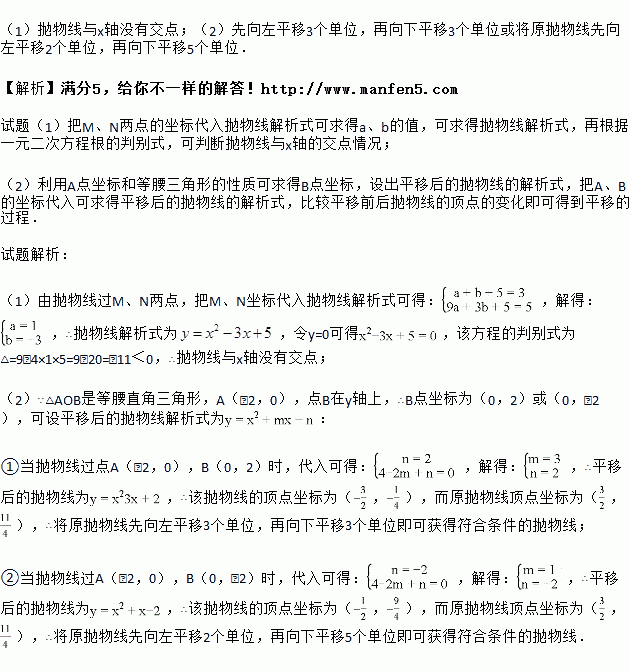 (1)试判断该抛物线与x轴交点的情况;