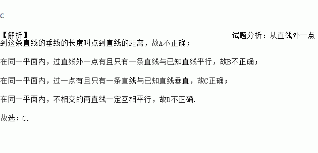C. 在同一平面内,过一点有且只有一条直线与已知直线垂直