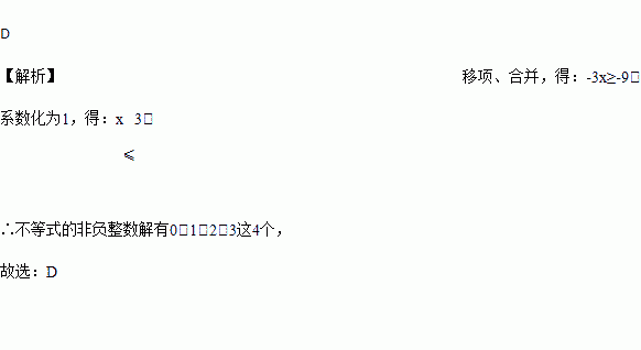 不等式5-2x≥x-4的非负整数解有( )