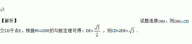 半圆形纸片的半径为1cm,用如图所示的方法将纸片对折,使对折后半圆弧的中点M与圆心O重合,则折痕CD的长为__________cm.