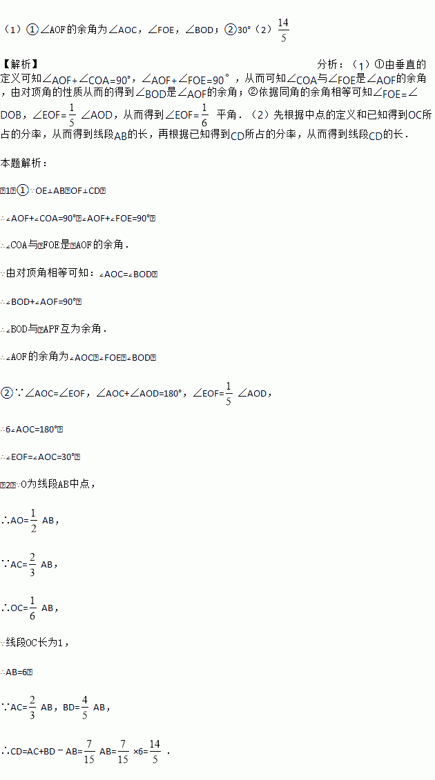 (1)如图1,直线AB,CD相交于点O,OE⊥AB,OF⊥CD.