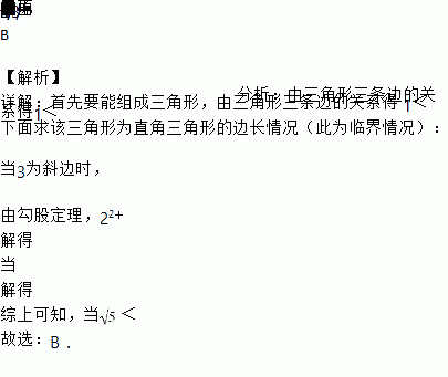 已知锐角三角形的边长是2,3,x,那么第三边x的取值范围是( )