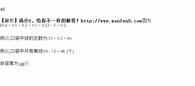 一个口袋中有12个白球和若干个黑球,在不允许将球倒出来数的前提下,小亮为估计口袋中黑球的个数,采用了如下的方法:每次先从口袋中摸出10个球,求出其中白球数与10的比值,再把球放回口袋中摇匀.不断重复上述过程5次,得到的白球数与10的比值分别为0.4,0.1,0.2,0.1,0.2.根据上述数据,小亮可估计口袋中大约有_______个黑球.