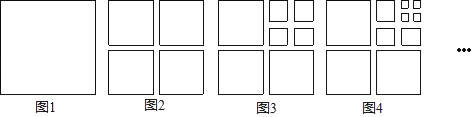 将图1中的正方形剪开得到图2,则图2中共有4个正方形;将图2中的一个正方形剪开得到图3,图3中共有7个正方形;将图3中4个较小的正方形中的一个剪开得到图4,则图4中共有10个正方形,照这个规律剪下去: