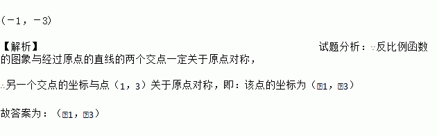 已知一个正比例函数的图象与一个反比例函数图象的一个交点坐标为(1,3),则另一个交点坐标是________.