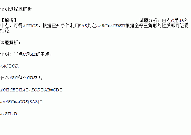如图:点C是AE的中点,∠A=∠ECD,AB=CD,求证:∠B=∠D.