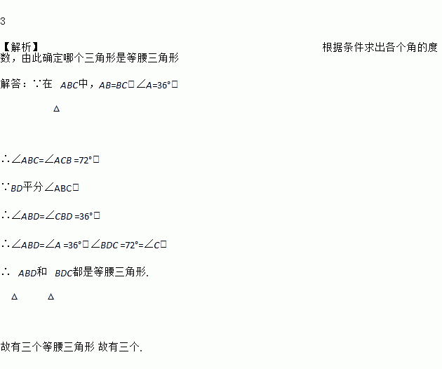 如图△ABC中,AB=BC,∠A=36°,BD平分∠ABC交AC于D,则图中的等腰三角形有_____个