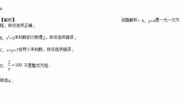 A. y = 4 B. x2 = 5 C. x+ y = 7 D. ![]()