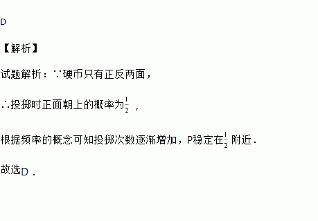 D. 投掷次数逐渐增加,(正面朝上)稳定在![]()