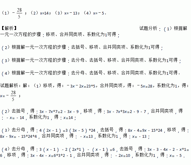 (2)3x﹣7(x﹣1)=2﹣3(x+3)
