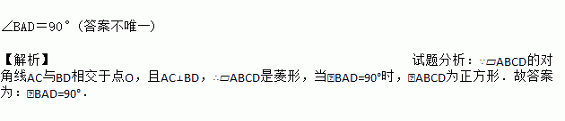 ?ABCD的对角线AC与BD相交于点O,且AC⊥BD,请添加一个条件:____________,使得?ABCD为正方形.