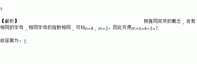 若2x4ym与﹣3xny3是同类项,则m+n=_____.