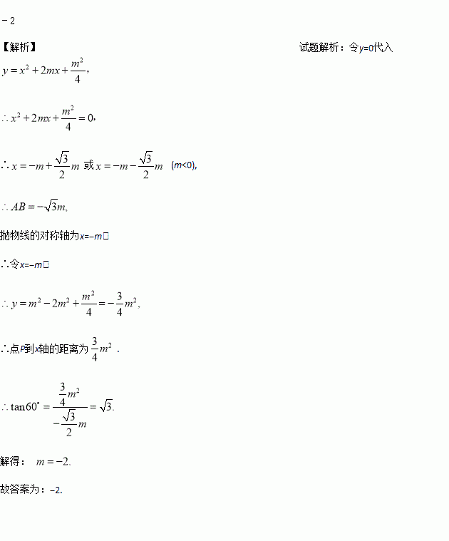 抛物线(m<0)的顶点为P,抛物线与x轴的交点为A、B,当△PAB是等边三角形时,m的值为__.