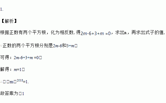 已知一个正数的两个平方根分别为2m﹣6和3+m,则(﹣m)2016的值为 .