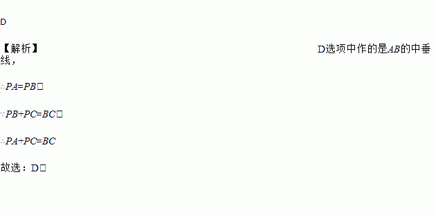 如图,已知△ABC(AC<BC),用尺规在BC上确定一点P,使PA+PC=BC,则符合要求的作图痕迹是( )