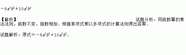 -6a3b2+10a3b3 【解析】试题分析:同底数幂的乘法法则,底数不变,指数相加.根据单项式乘以多项式的计算法则得出答案. 试题解析:原式=-6a3b2+10a3b3.