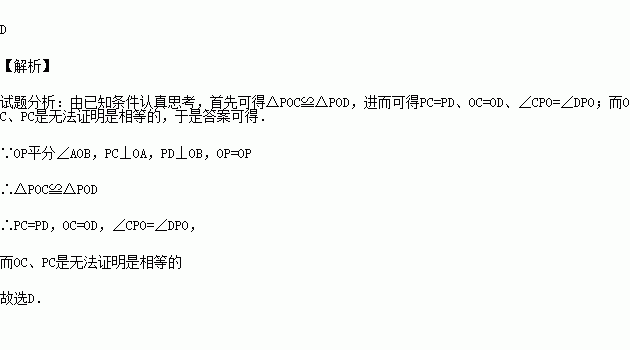 A. PC=PD B.OC=OD C.∠CPO=∠DPO D.OC=PC
