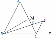 如图,△ABC是等边三角形,CE是外角平分线,点D在AC上,连结BD并延长与CE交于点E。![]()