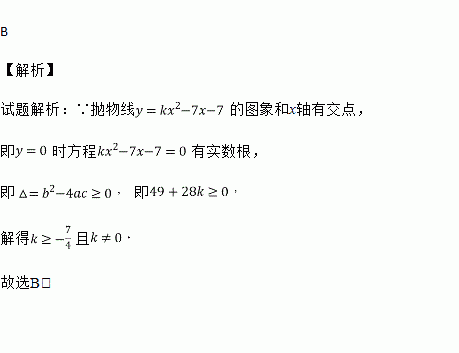 抛物线y=kx2﹣7x﹣7的图象和x轴有交点,则k的取值范围是( )
