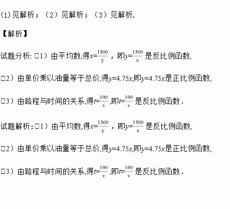 (2)在加油站,加油机显示器上显示的某一种油的单价为每升4.75元,总价从0元开始随着加油量的变化而变化,则总价y(元)与加油量x(L)的函数关系式;